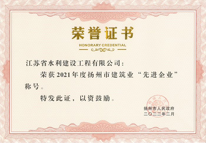2021年度揚州市建筑業(yè)先進企業(yè)