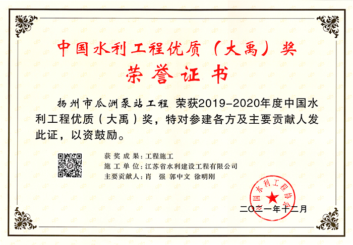 2022年度揚州市建筑業(yè)先進企業(yè)榮譽證書